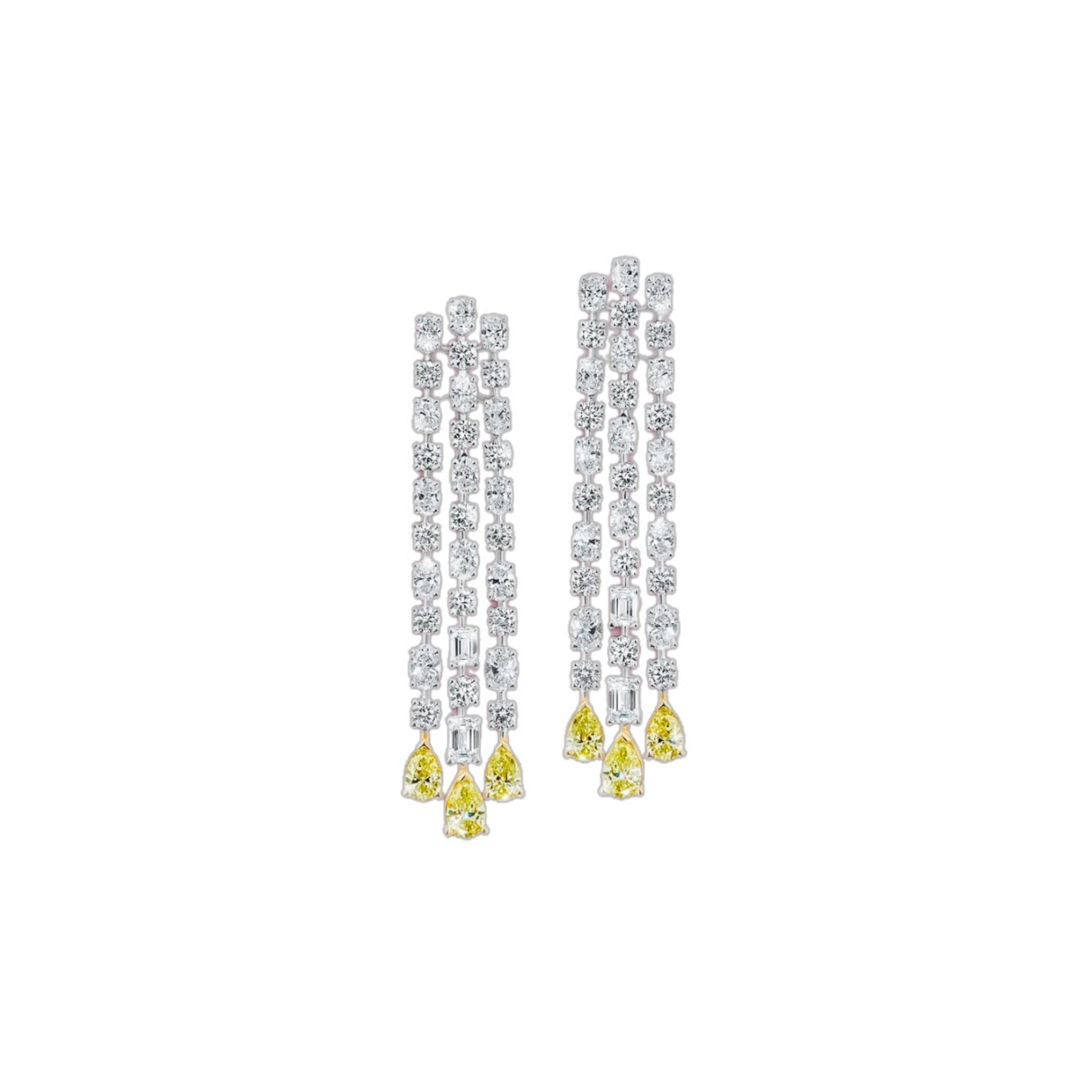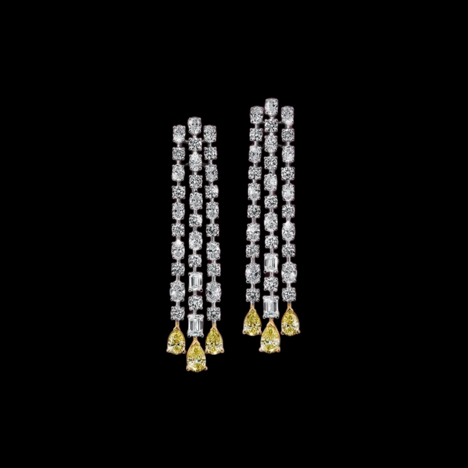 Diamond Earrings Totaling 25 Carats of Near Colorless Diamonds and Yellow Diamonds 18k Gold Material