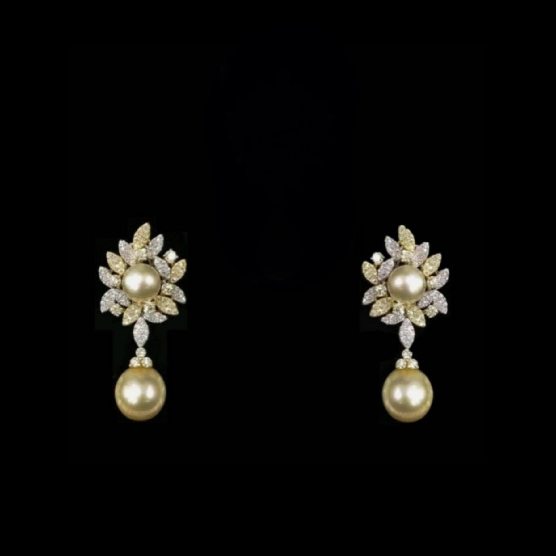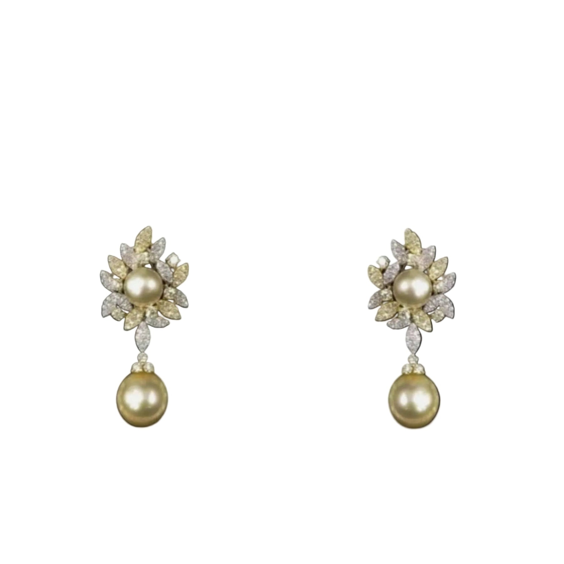 Diamond and Pearl Earrings Totaling 3.00 Carats of Yellow and White Diamonds Center and Drop Pearl 18kt Gold Material