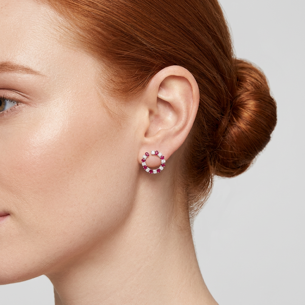 Diamond Ruby Earrings Totaling 1.25 of Diamonds, 1.30 Carats of Ruby 18K Gold Material