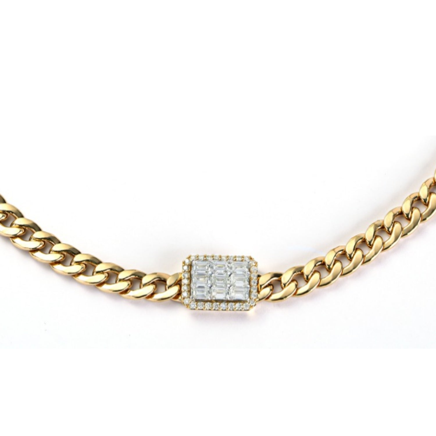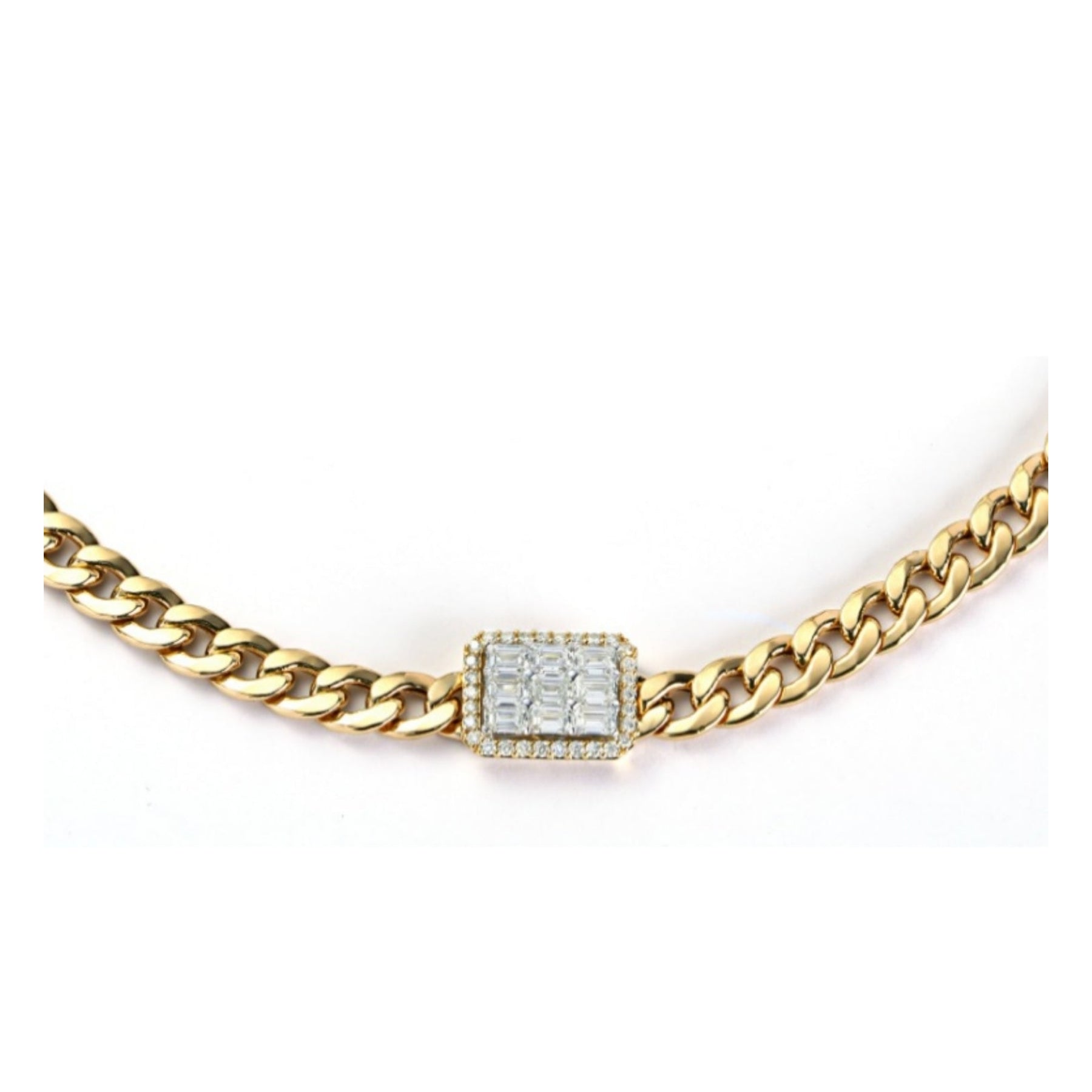 Cuban Link Diamond  Necklace Totaling 2.10 Carat of Near Colorless Diamond 18kt Gold Material