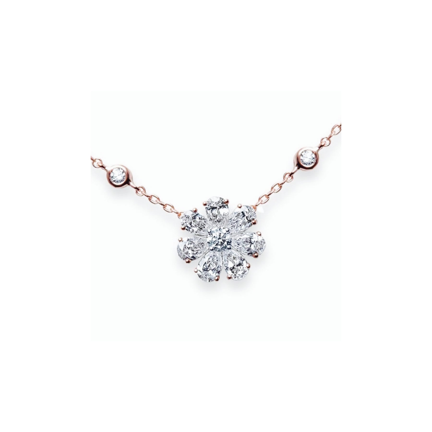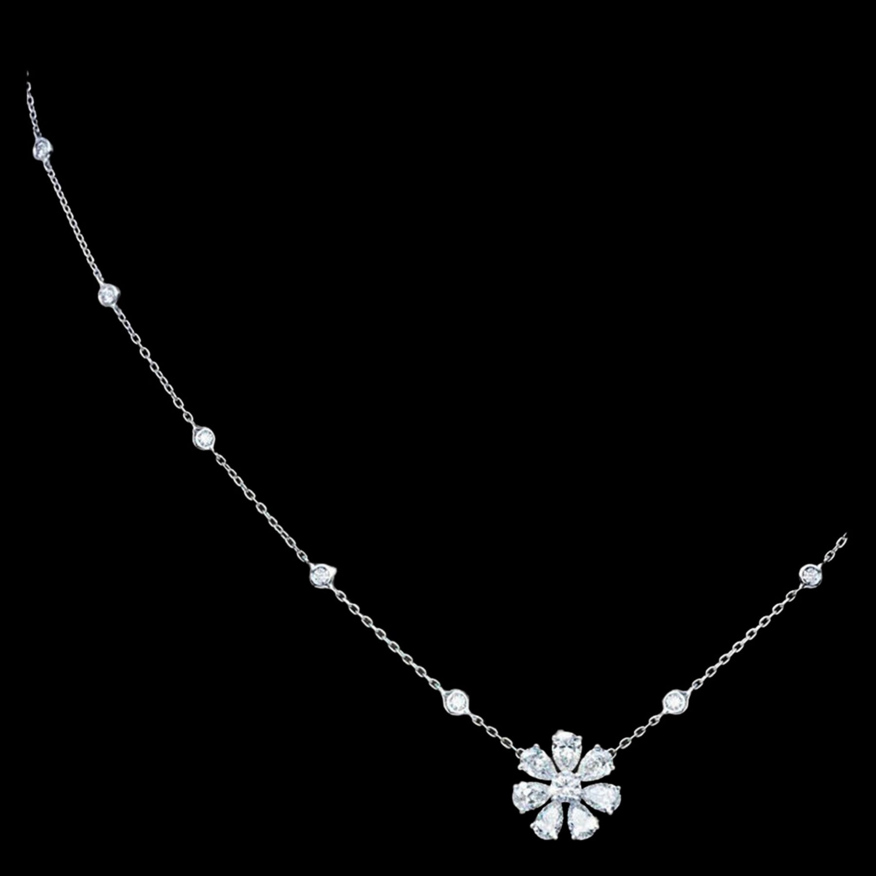Daisy flower precious diamond pendant set with teardrop diamonds center round brilliant great for the bride.